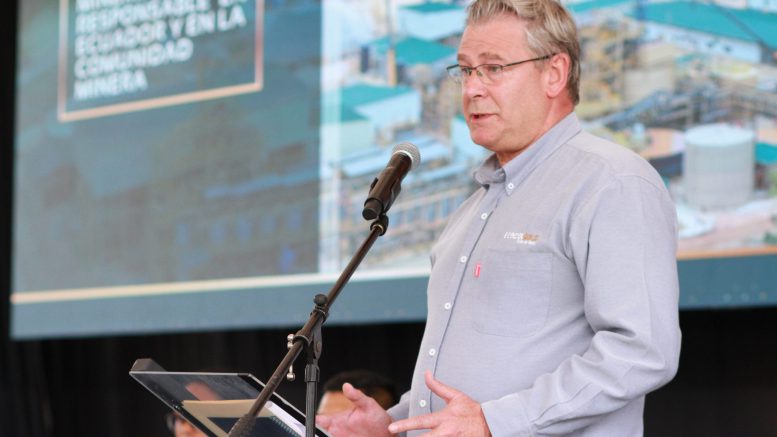 Ron Hochstein delivering his speech during the inauguration event at Fruta del Norte in 2020. (Image: CNW Group/Lundin Gold Inc.)