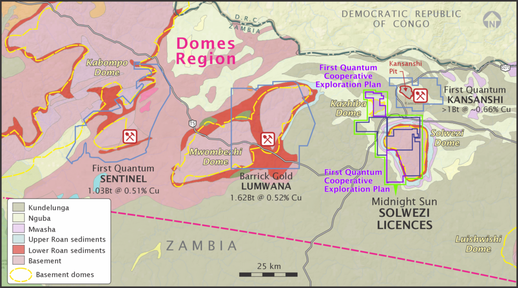 Midnight Sun sees the small Kazhiba deposit’s value as a cash generator. Since it’s less than 10 km from First Quantum’s mill, it can pay for advancing the wider Solwezi with the goal one day of rivalling major neighbours in resources.