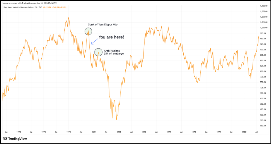 Six months after the Yom Kippur War began, the US Dow Jones Industrial Average fell 17% from its 1973 peak.