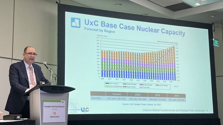 Increasing demand for nuclear reactor builds in the United States – and other demand sources – could lift utility needs more than 12-fold to 103 million lb. of uranium by 2031 from 8 million lb. in 2027, UxC Executive Vice-President Nicolas Carter said Tuesday on the Reviving the Uranium Life Cycle panel.
