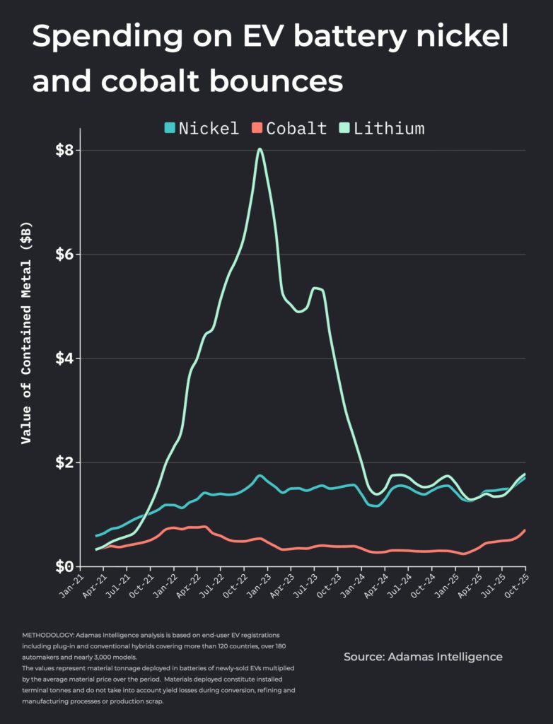 The boom in value of both the nickel and cobalt battery market heading into 2026 is also thanks to a late surge in the U.S. after EV buyers pulled ahead purchases before the expiry of retail incentives at the end of September.